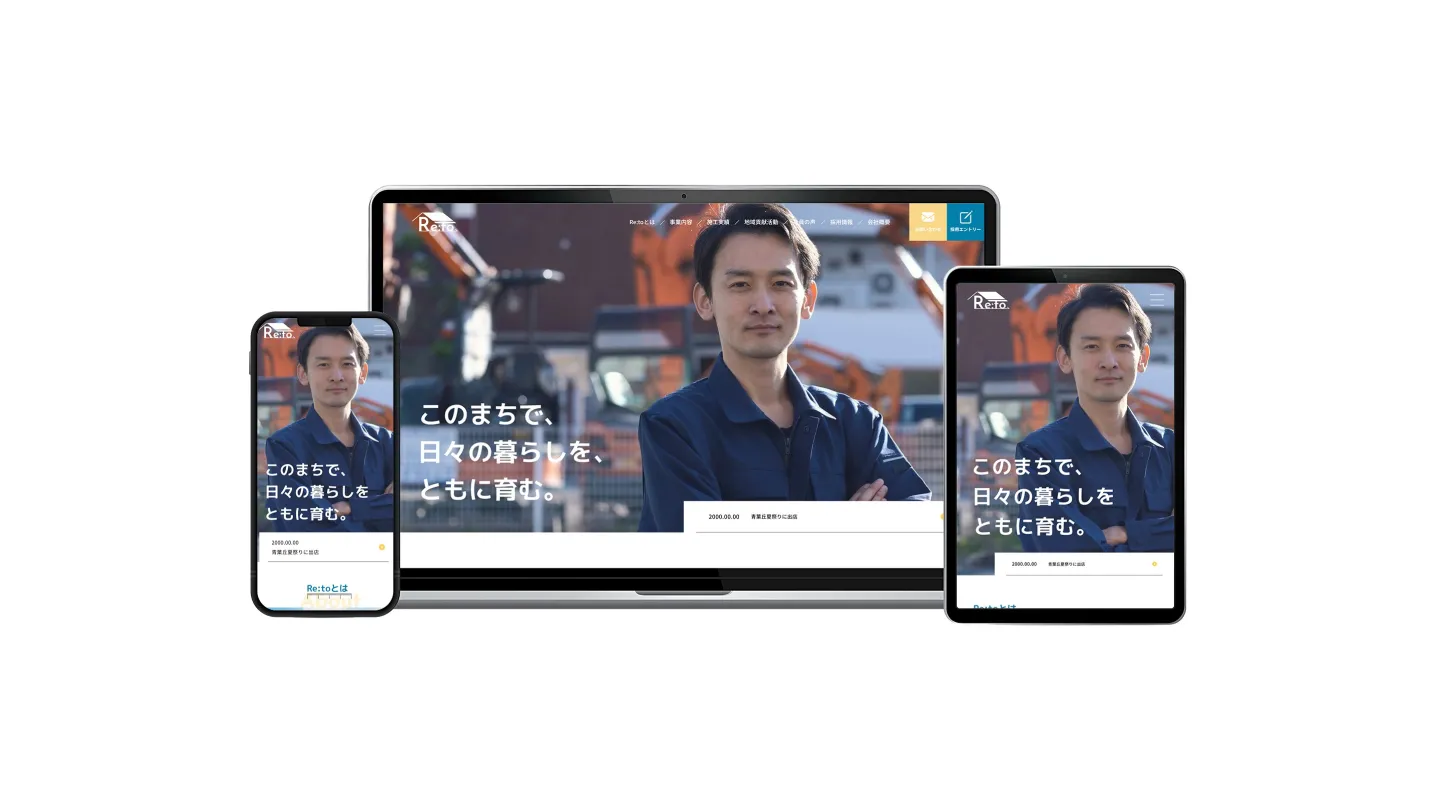 札幌市の架空の町、青葉丘にある建設会社「株式会社Re:to」のWEBサイトのデザイン。